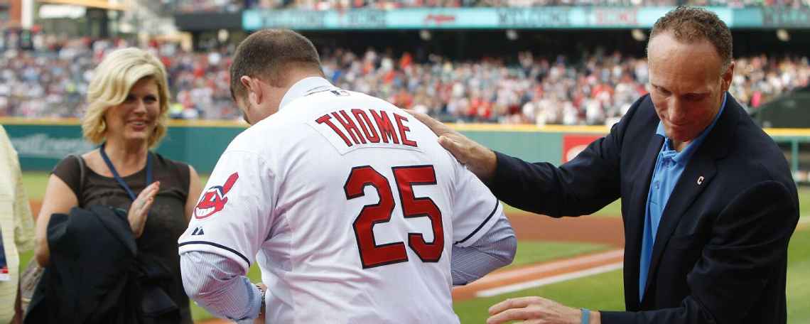 El líder de jonrones del club, Thome, fue honrado durante una ceremonia el sábado antes de que los Indios recibieran a Baltimore. Thome conectó 337 de sus 612 jonrones en dos temporadas con los Indios y su poderoso swing ayudó al club a pasar de ser un hazmerreir permanente a uno de los mejores equipos de béisbol en la década de los 90.