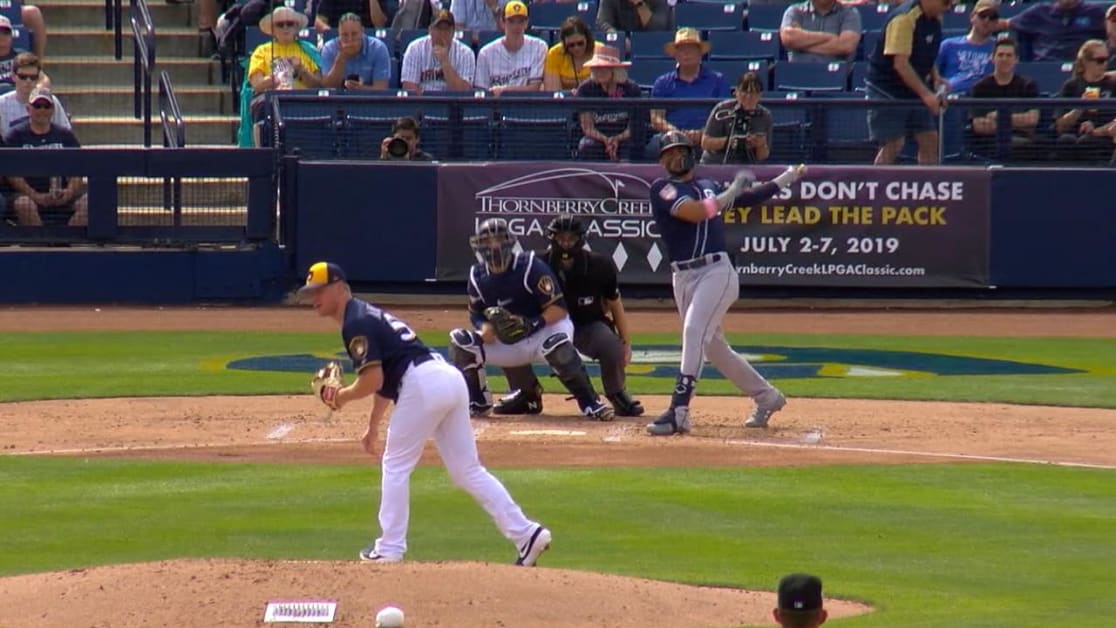 El torpedero de 20 años, una estrella en ascenso, inició su segundo partido de la pretemporada el martes, contra los Cerveceros. En su segundo turno al bate, pegó un jonrón al jardín central-izquierdo frente al derecho Chase Anderson.