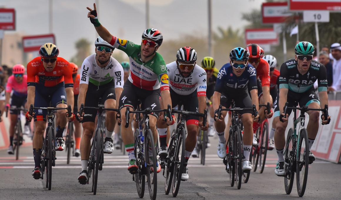 En una cerrada volata, el italiano del Deceuninck-Quick Step se impone a Gaviria, Kittel y Bennett. No hay cambios en la general, liderada por Roglic. Mañana, etapa decisiva con final en Jebel Jais (20,6 km al 5,4%).