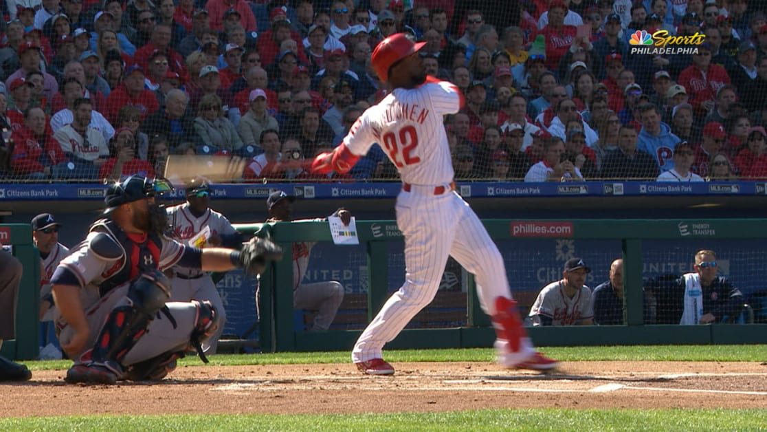 La nueva ofensiva de los Filis guio al equipo a una victoria por 10-4 sobre los Bravos. Empezó el espectáculo con un jonrón de McCutchen en el mismo primer turno de Filadelfia en la temporada, frente al colombiano Julio Teherán. McCutchen terminó el juego bateando de 4-1 con ese cuadrangular, una base por bolas y dos anotadas.