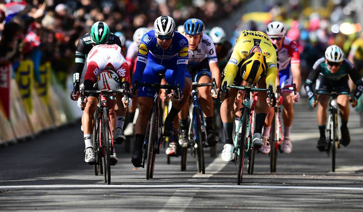 Ya en la volata, el tapado de los últimos kilómetros, el sprinter que menos compañeros llevaba en el grupo, Caleb Ewan (Lotto Soudal), está a punto de amargarle el día aGroenewegen, con una progresión hábil y espectacular en los últimos metros. Tercero esFabio Jakobsen, uno de los hombres rápidos –otro más- del Deceuninck-Quickstep.