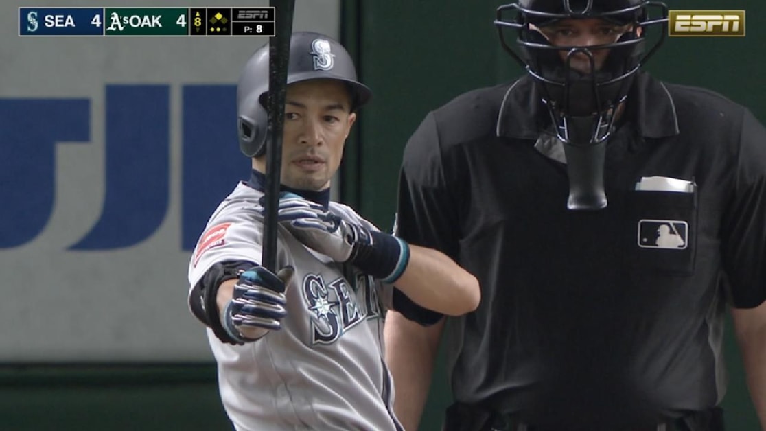 Ichiro se fue de 4-0 al bate en su adiós. En su último turno, se presentó con dos outs, un corredor en segunda base y el marcador empatado en el octavo. Bateó un rodado lento al campocorto y, corriendo a toda marcha, fue sacado out con lo justo en primera.