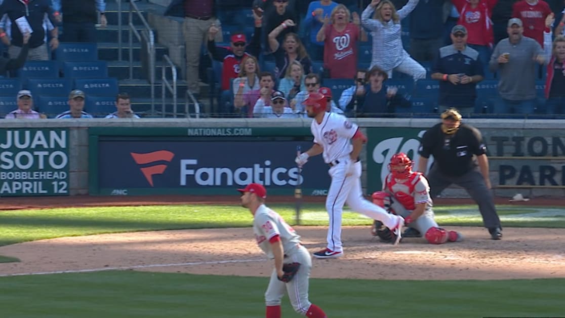 Fue el final apropiado para un juego de ida y vuelta. Washington estuvo abajo 2-0, repuntó a 6-2 gracias a un trío de cuadrangulares ante Aaron Nola, luego quedaron abajo 8-6 tras permitir cuatro carreras en la octava para luego empatar el marcador en la parte baja del inning.