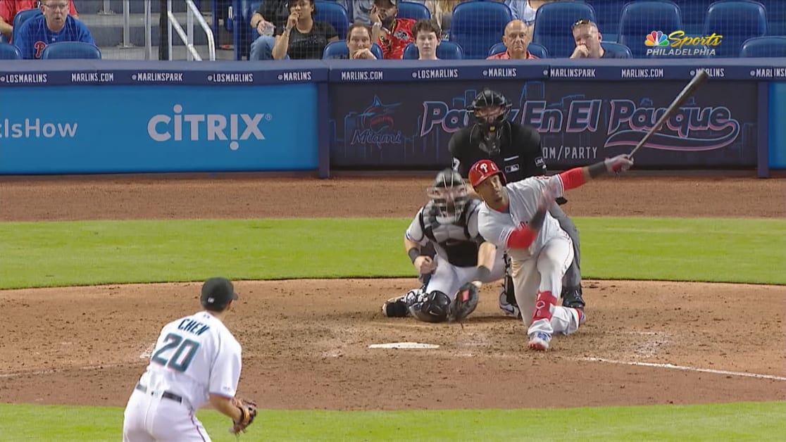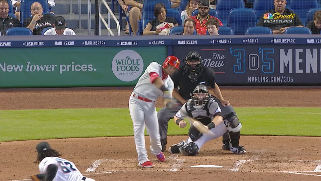 El venezolano César Hernández también logró su primer vuelacercas de la temporada para los Filis. Brian Anderson pegó su segundo para Miami.