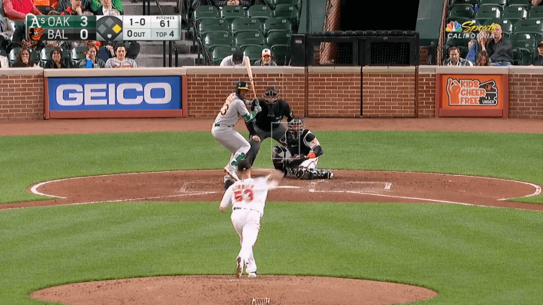 Chris Davis ingresó como emergente en la novena entrada y sacó un elevado a jardín central. Esta temporada batea de 29-0 y no ha disparado de hit desde el 14 de septiembre.