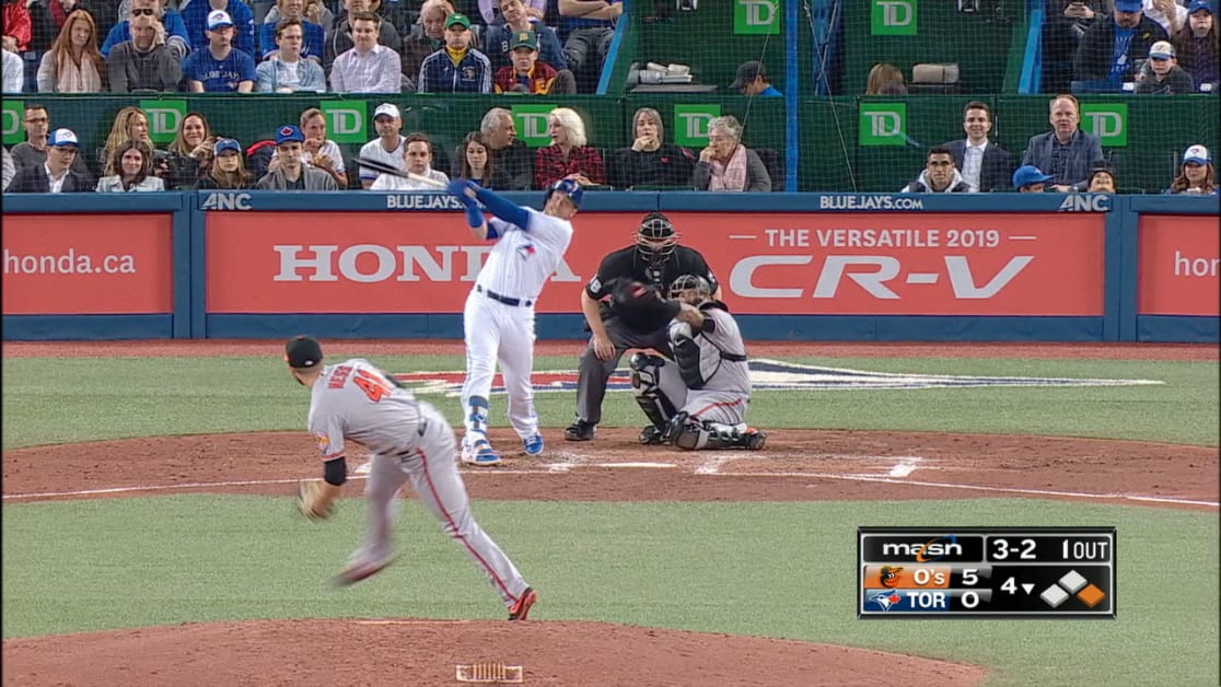 Hess ponchó a ocho y dio una base por bolas antes que el manager de primer año Brandon Hyde lo sacara después de 82 lanzamientos. El relevista dominicano Pedro Araujo dio pasaporte a Justin Smoak y luego admitió el cuadrangular de dos carreras de Randal Grichuk, el primer imparable de Toronto.