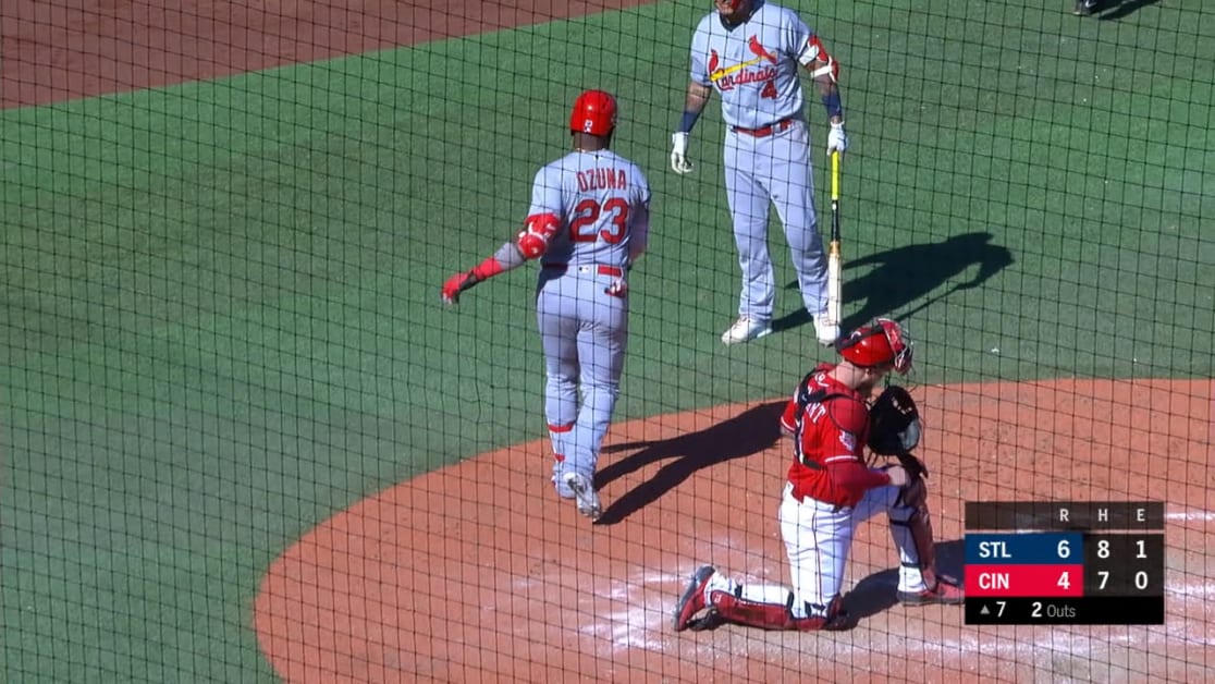 Con la pizarra empatada 4-4, Carpenter abrió el séptimo episodio con su segundo cuadrangular de la campaña en contra de Amir Carrett (1-1). Ozuna pegó un jonrón solitario ante Jared Hughes y el venezolano José Martínez coronó un ataque de cinco carreras con un sencillo que llevó dos más al plato.