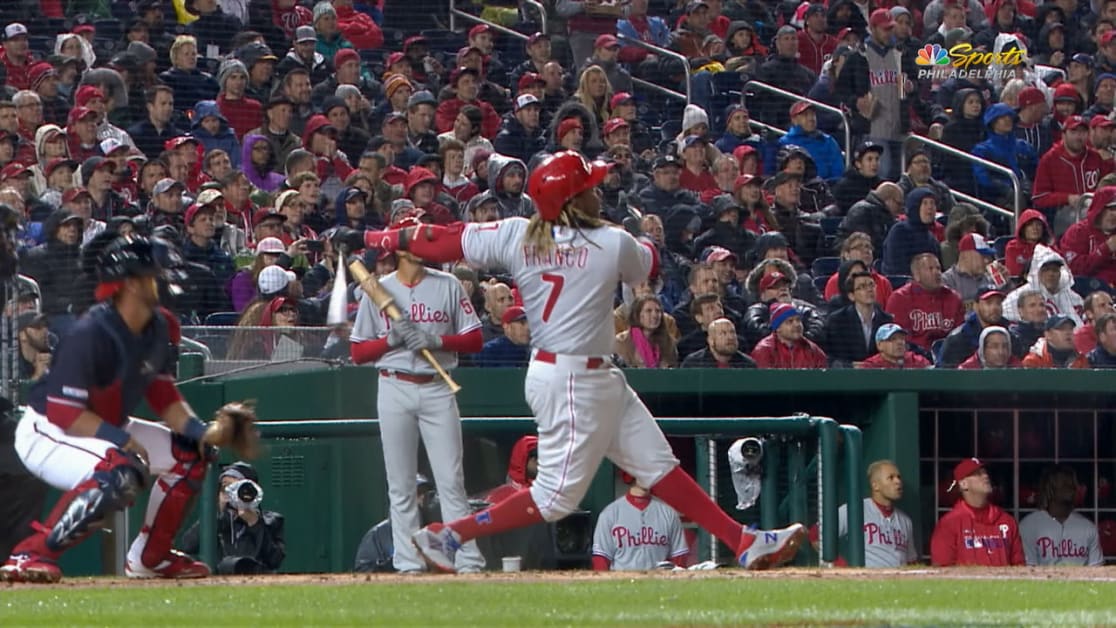 Franco ha pegado tres jonrones en los primeros cinco compromisos de la campaña. Cada vuelacercas ha sido bateando de octavo en el lineup de los Filis. Spud Davis (1930) y Andy Seminick (1948) son los dueños del récord en el equipo con 13 cuadrangulares bateando de octavo en la alineación. Del Crandall estableció la marca en las Grandes Ligas con 22 jonrones como octavo en el lineup con los Bravos de Milwaukee en 1955.