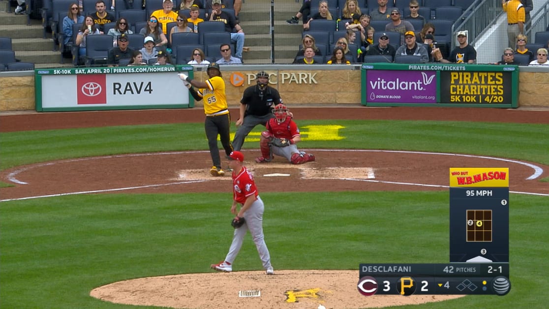 Josh Bell sacudió un jonrón de 474 pies ante el abridor de los Rojos Anthony DeSclafini (0-1) en el cuarto capítulo.