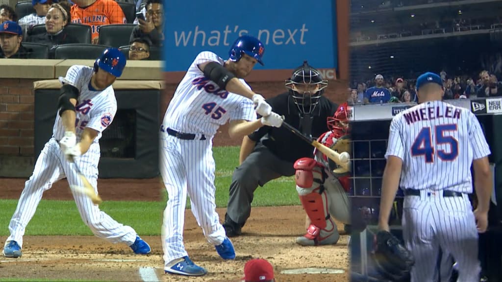Bateador de .129 en su carrera, Wheeler sacó una línea para doble que impulsó dos carreras en el segundo capítulo contra Zach Eflin (2-3). En su siguiente turno, Wheeler lo hizo incluso mejor, al enviar su tablazo por encima de la barda entre el izquierdo y central.
