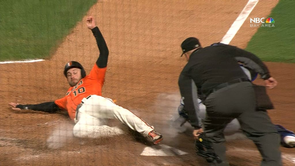 Longoria avanzó a tercera base en un wild pitch y llegó al plato en una roleta en una jugada de escogencia de Brandon Crawford.