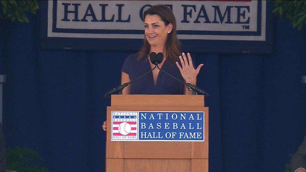 Su viuda, Brandy, se encargó de dar el discurso y tuvo que contener las lágrimas al hablar. Halladay tenía 40 años cuando falleció en un accidente de aviación en noviembre de 2017.