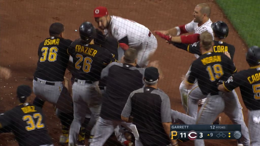 El relevista de los Rojos, Amir Garrett, fue suspendido ocho juegos por desatar el incidente cerca de la cueva de los Piratas y por lanzar un puño en la novena entrada del compromiso.